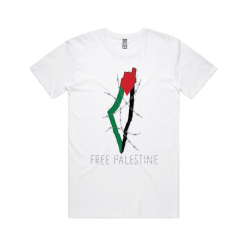 Our original unique design of the kufiya using the map of Palestine and the colours of the Palestinian flag.